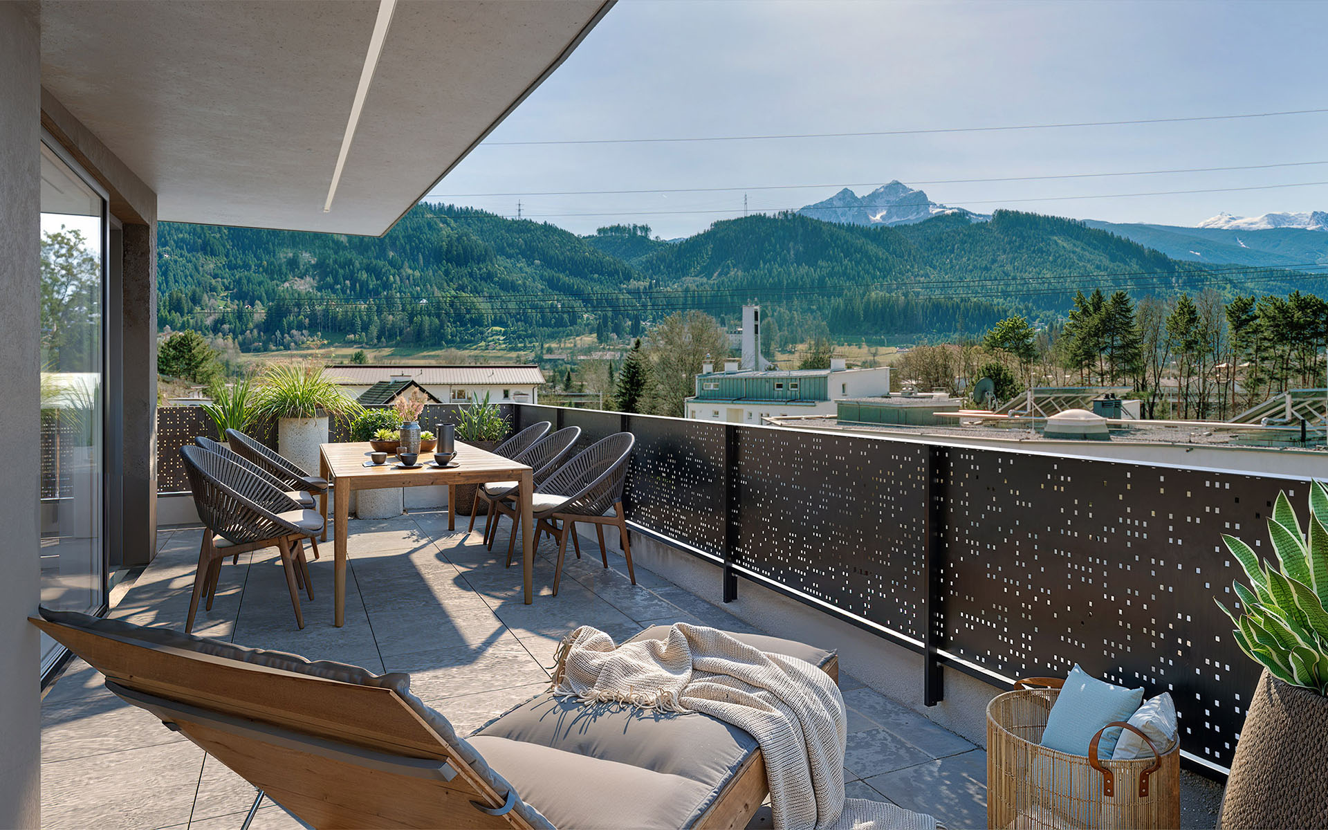 Besonderes Augenmerk wurde bei der gut durchdachten und modernen Planung auf helle Räume mit grosszügigen Fensterflächen gelegt, welchen südwestliche Terrassen bzw. Balkone vorgelagert sind.
